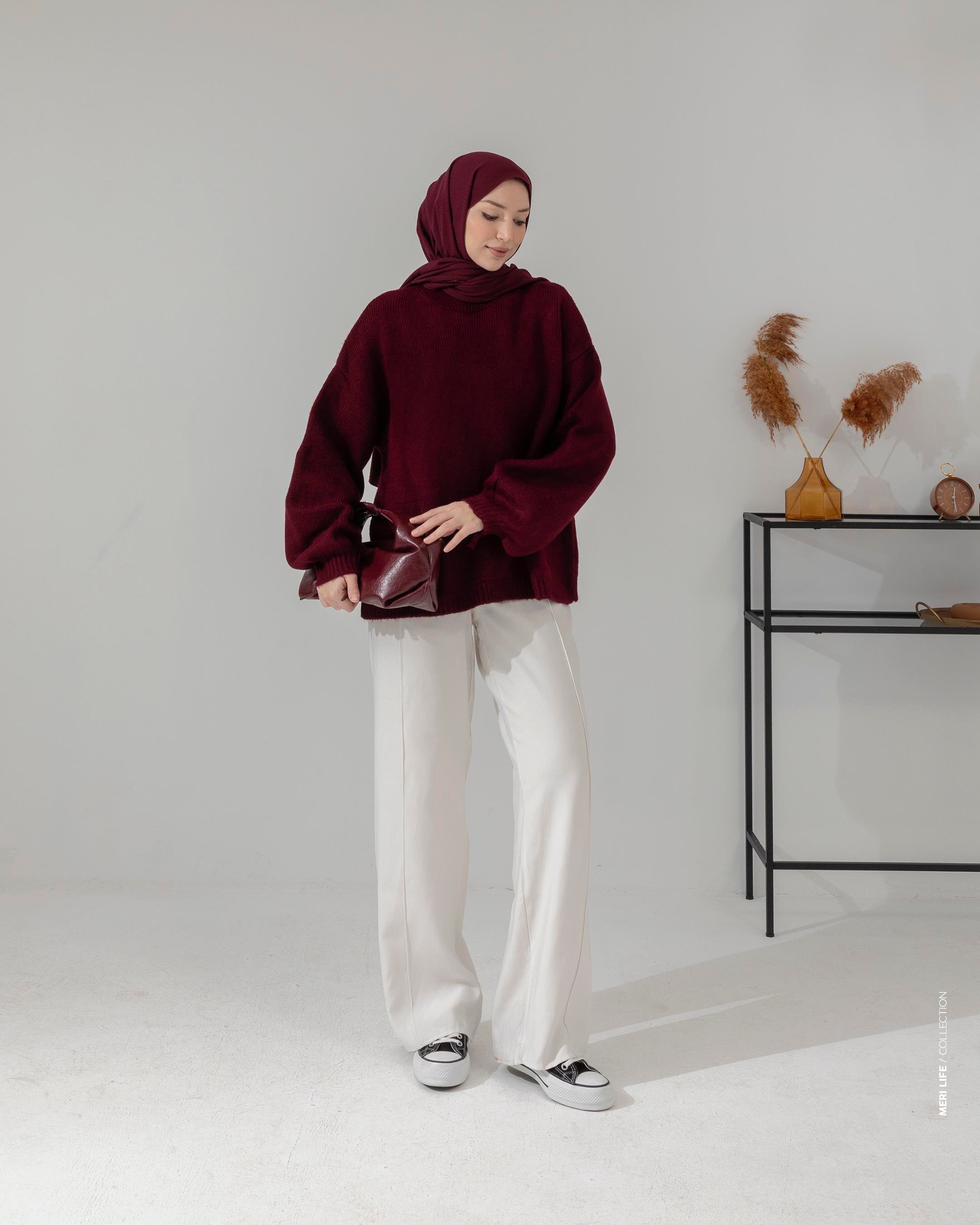 Bisiklet Yaka Bordo Triko Kazak