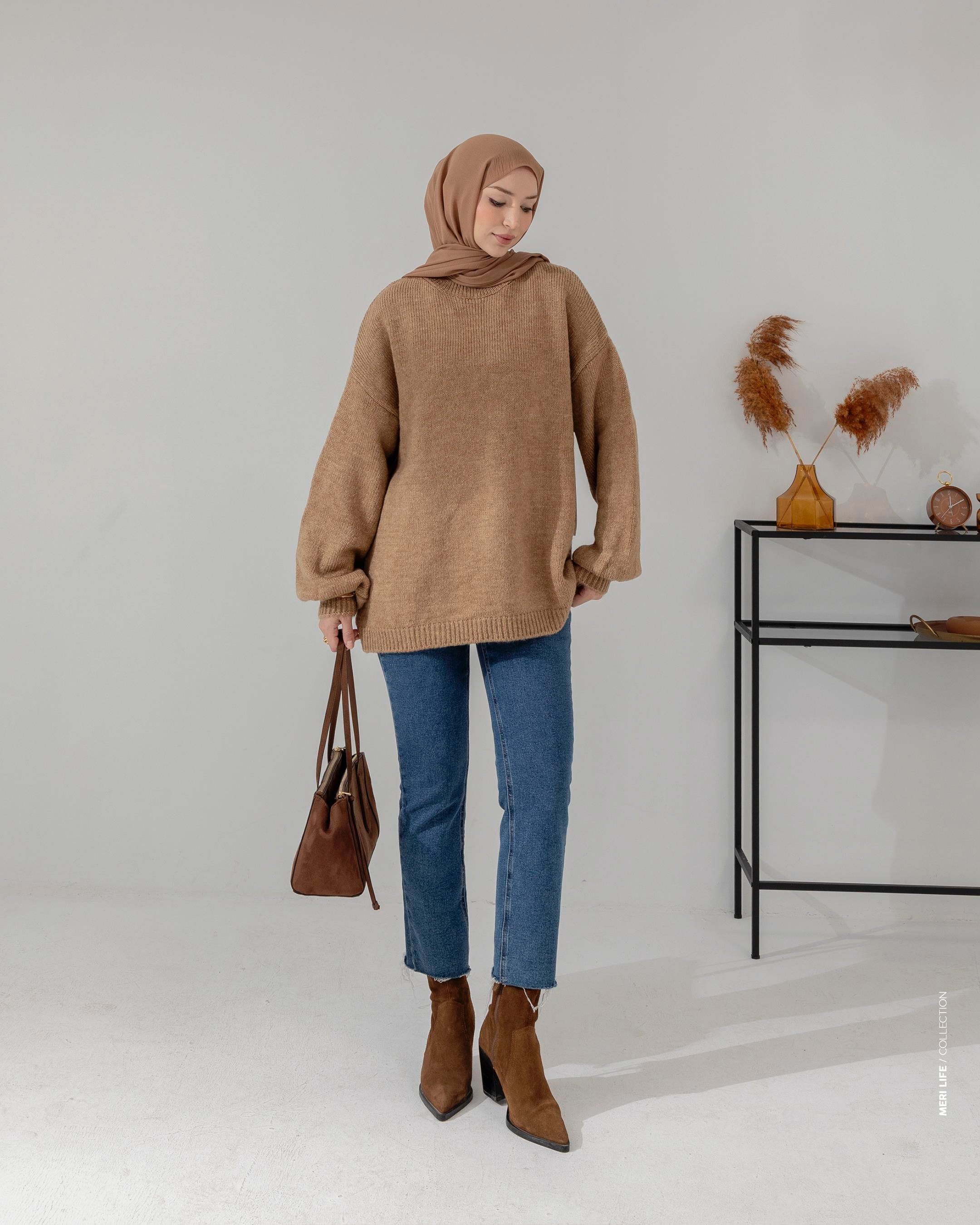 Bisiklet Yaka Camel Triko Kazak
