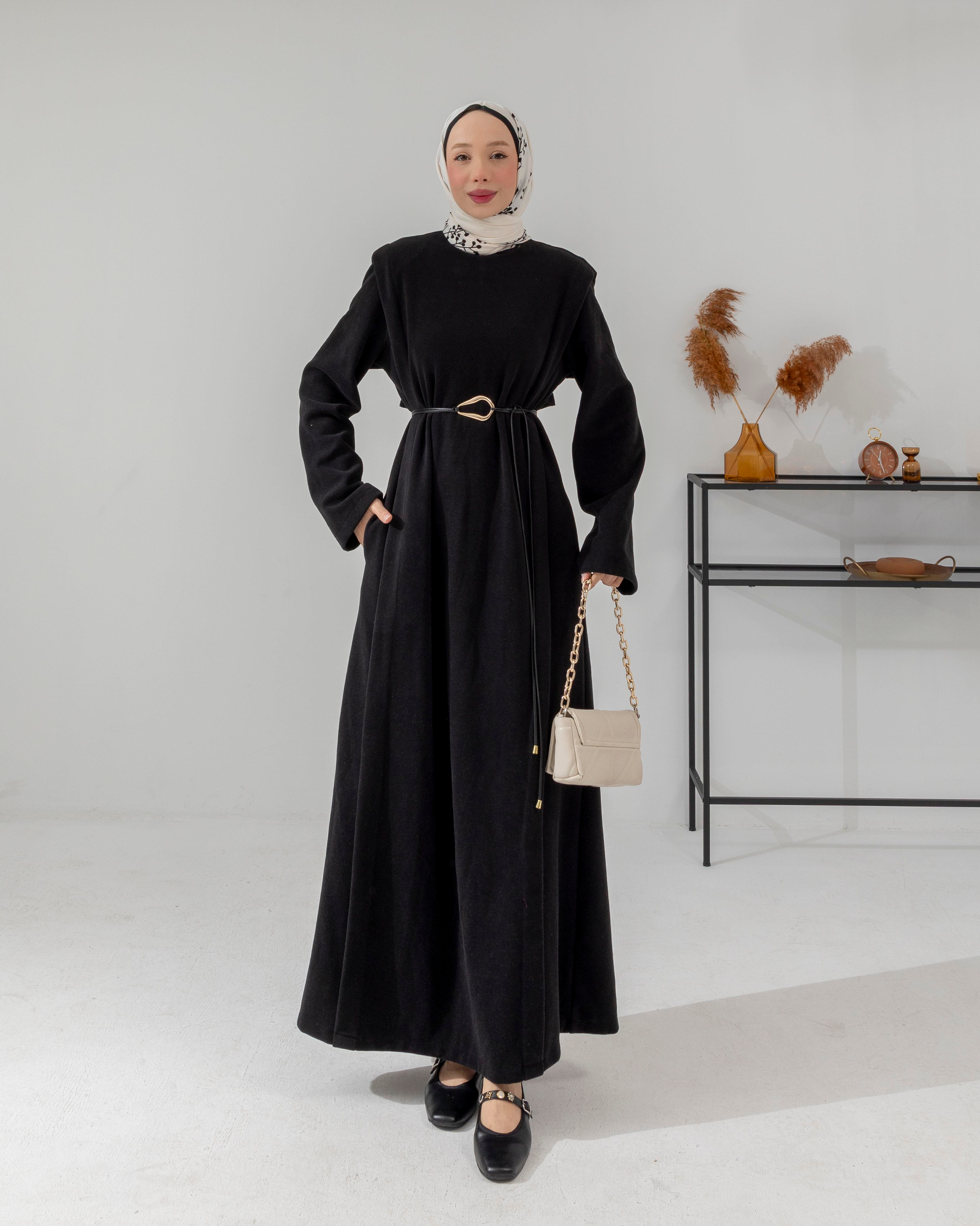 Deri Kemerli Siyah Elbise