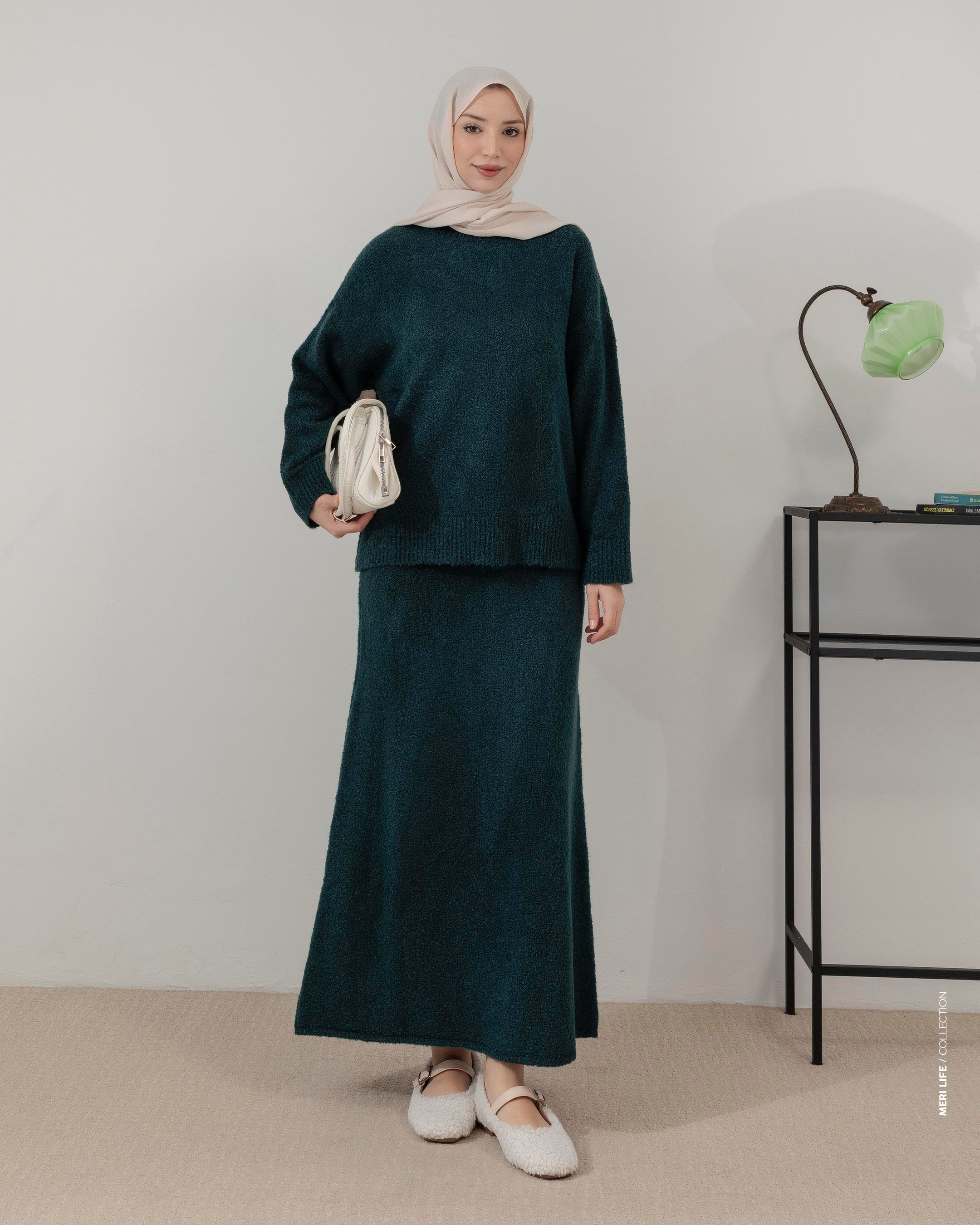 Dokulu Petrol Yeşili Etekli Triko Takım
