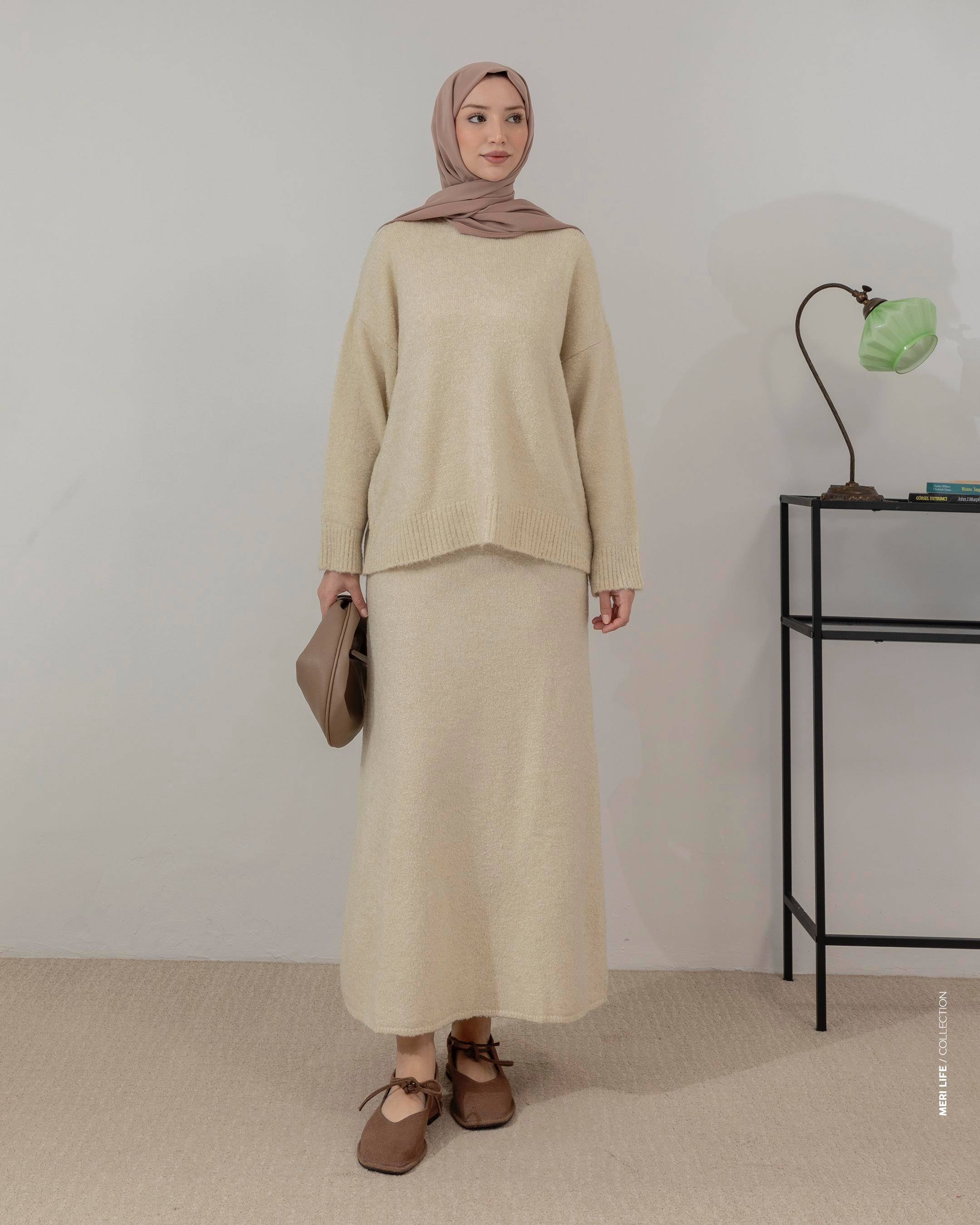 Dokulu Taş Etekli Triko Takım