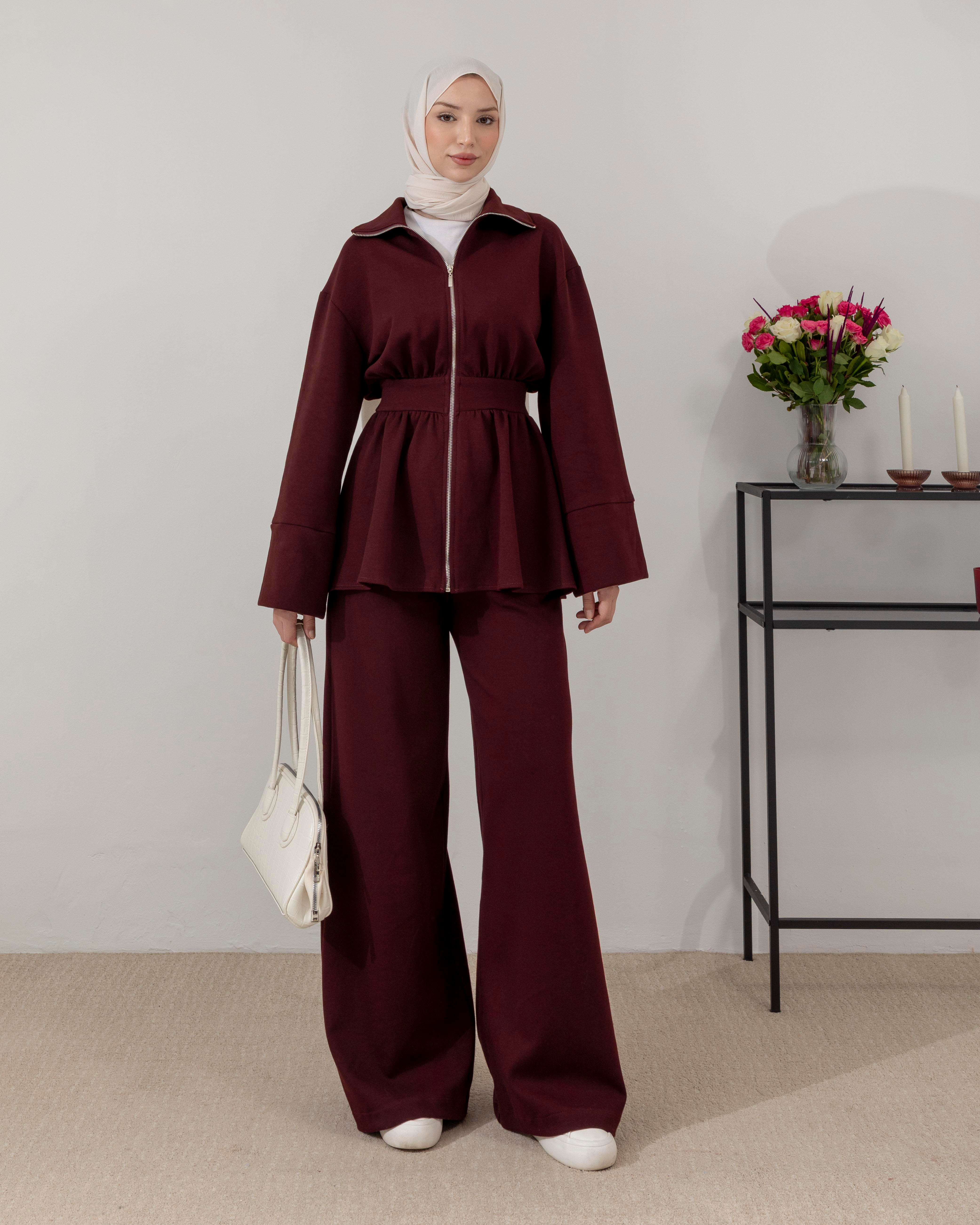 Fermuarlı Sweat Pantolon Bordo Takım