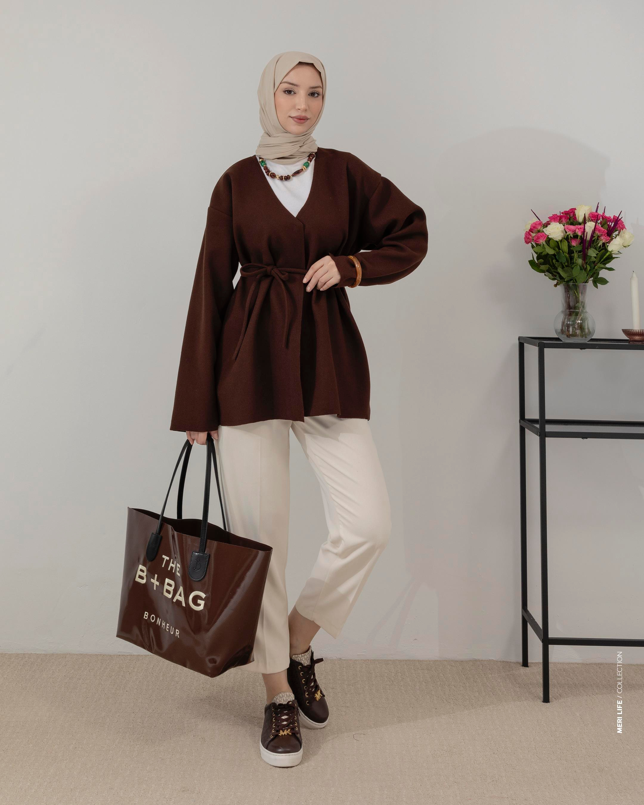 Kemerli Kahve Kaşe Ceket