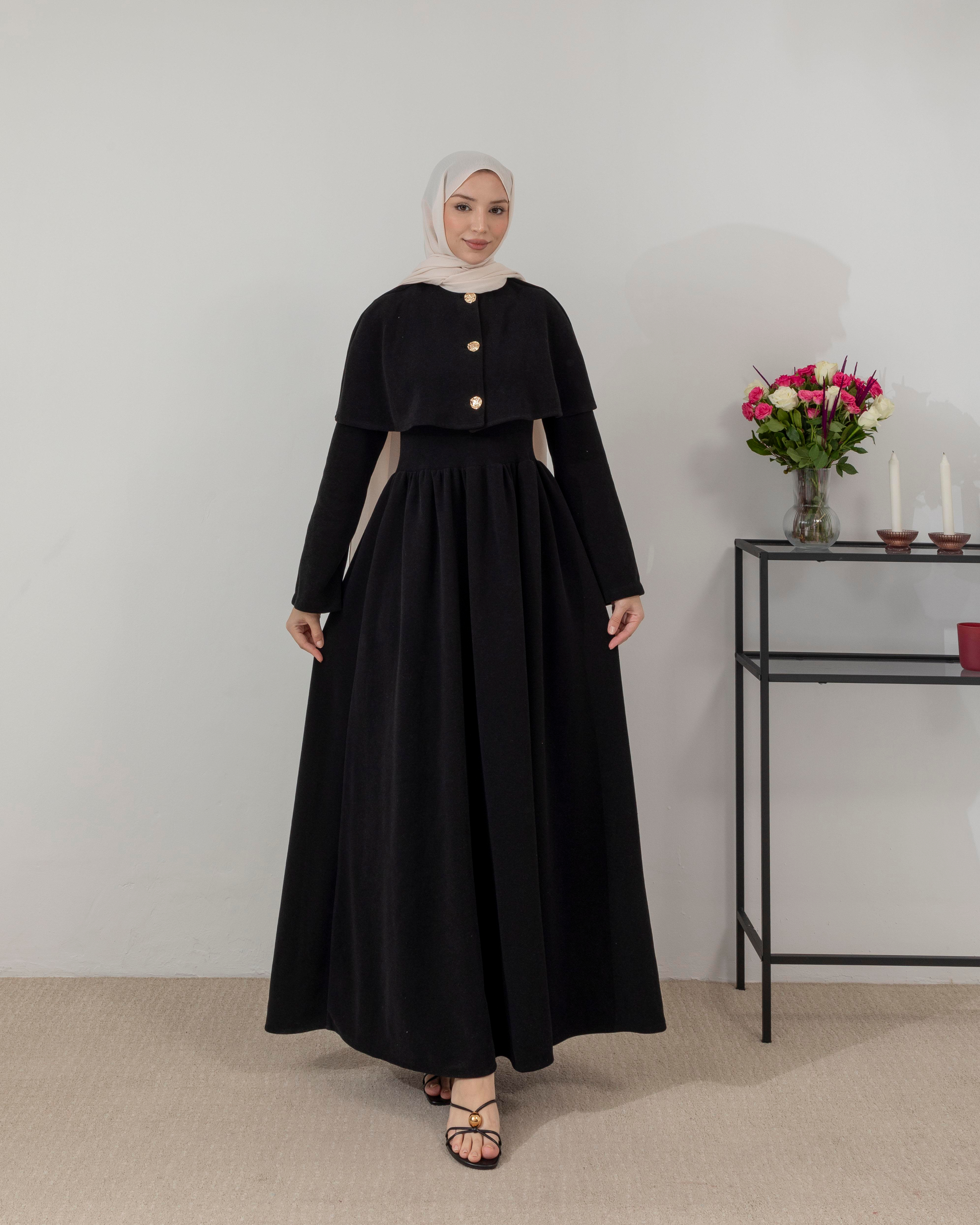 Pelerin Detaylı Siyah Elbise
