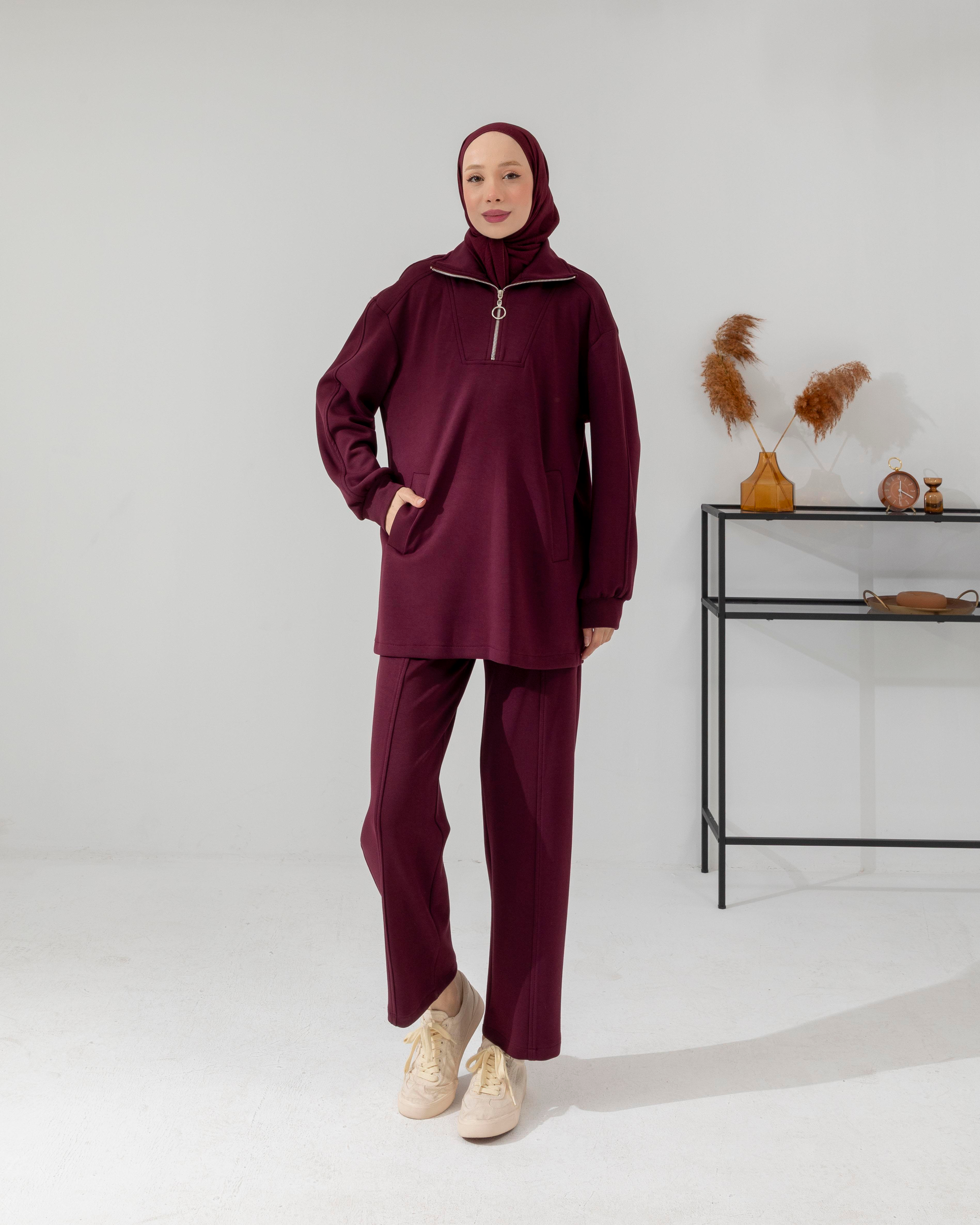 Yarım Fermuarlı Bordo Oysho Takım