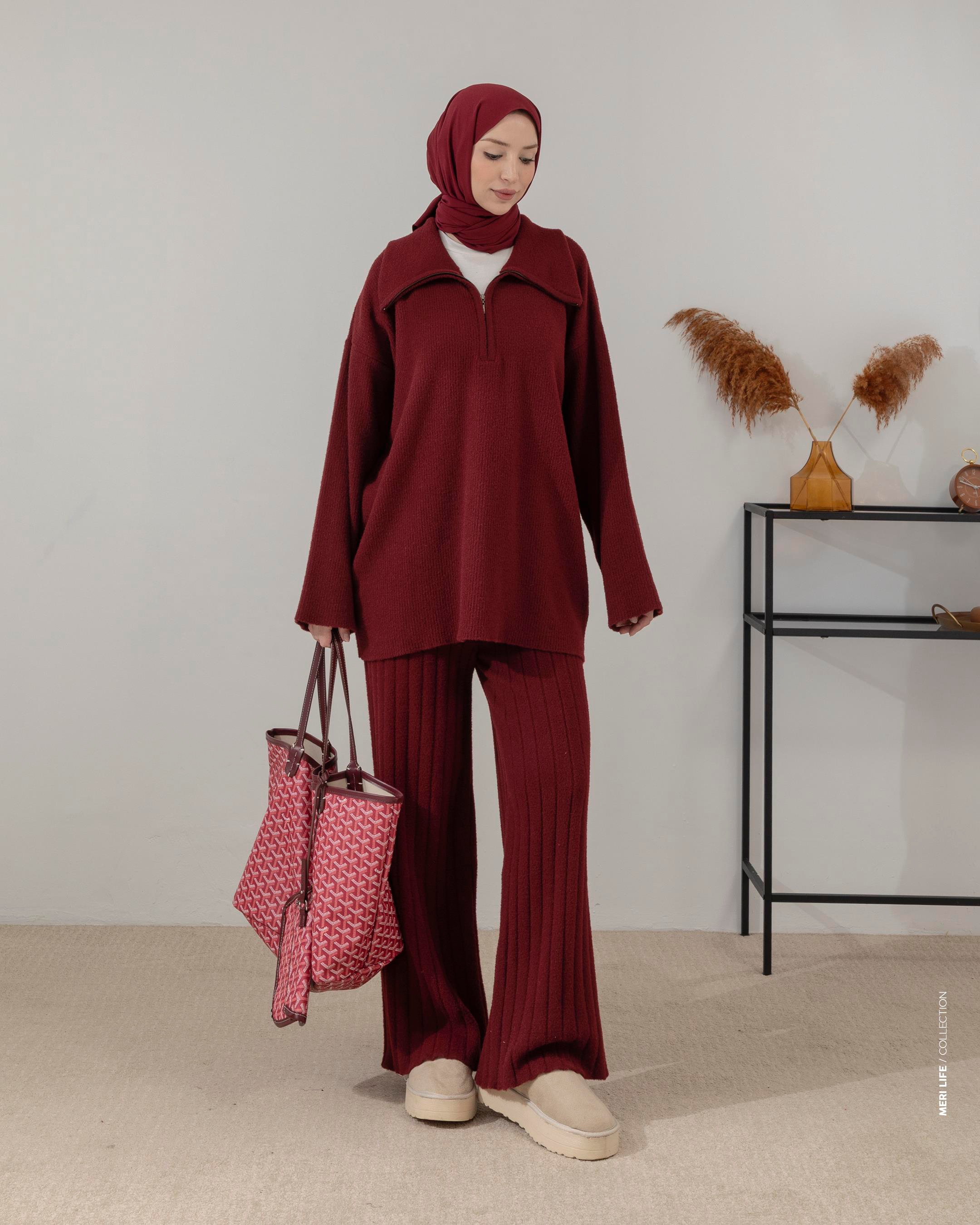 Fermuarlı Bordo Triko Takım