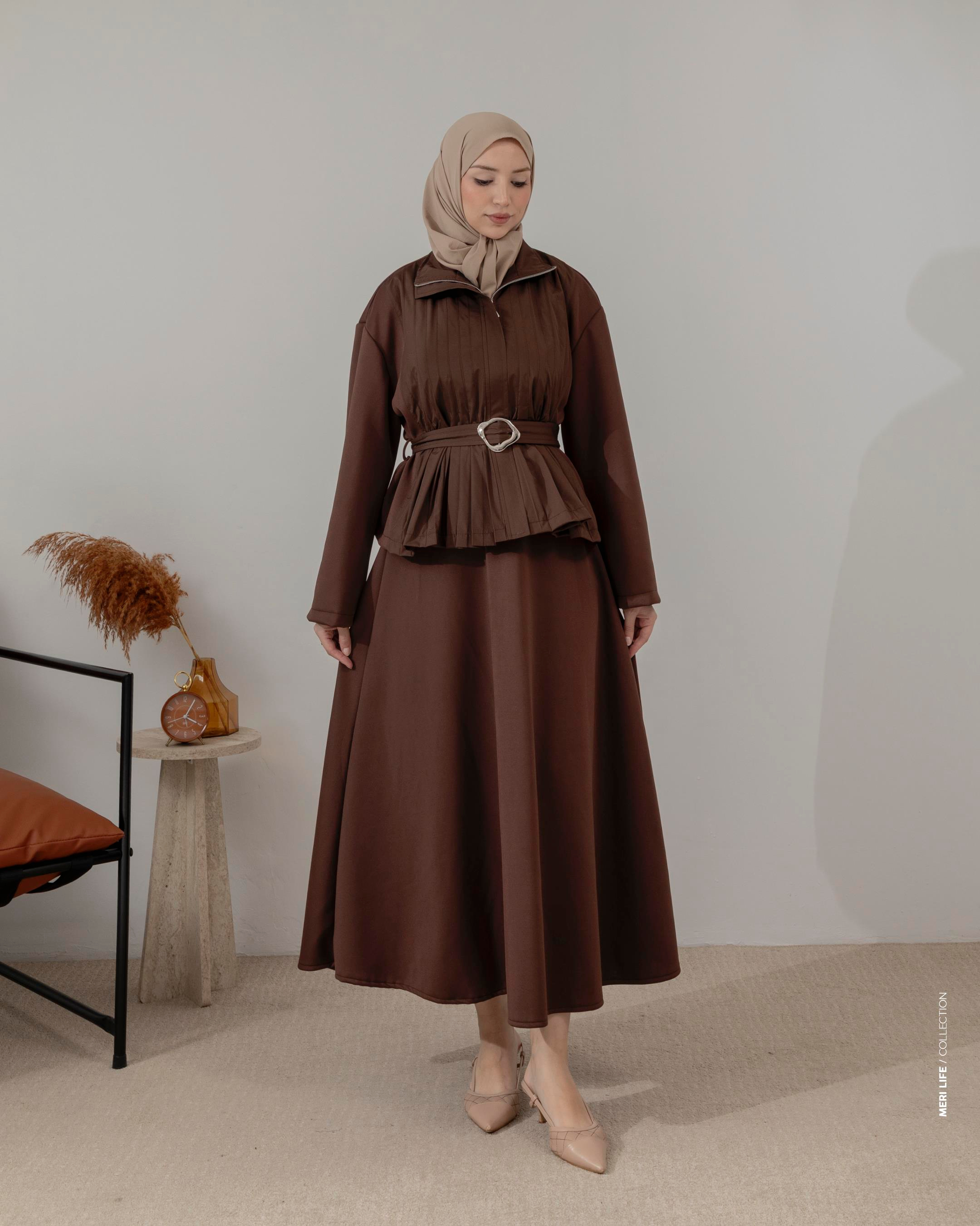 Fermuarlı Pile Detaylı Kahve Etekli Takım