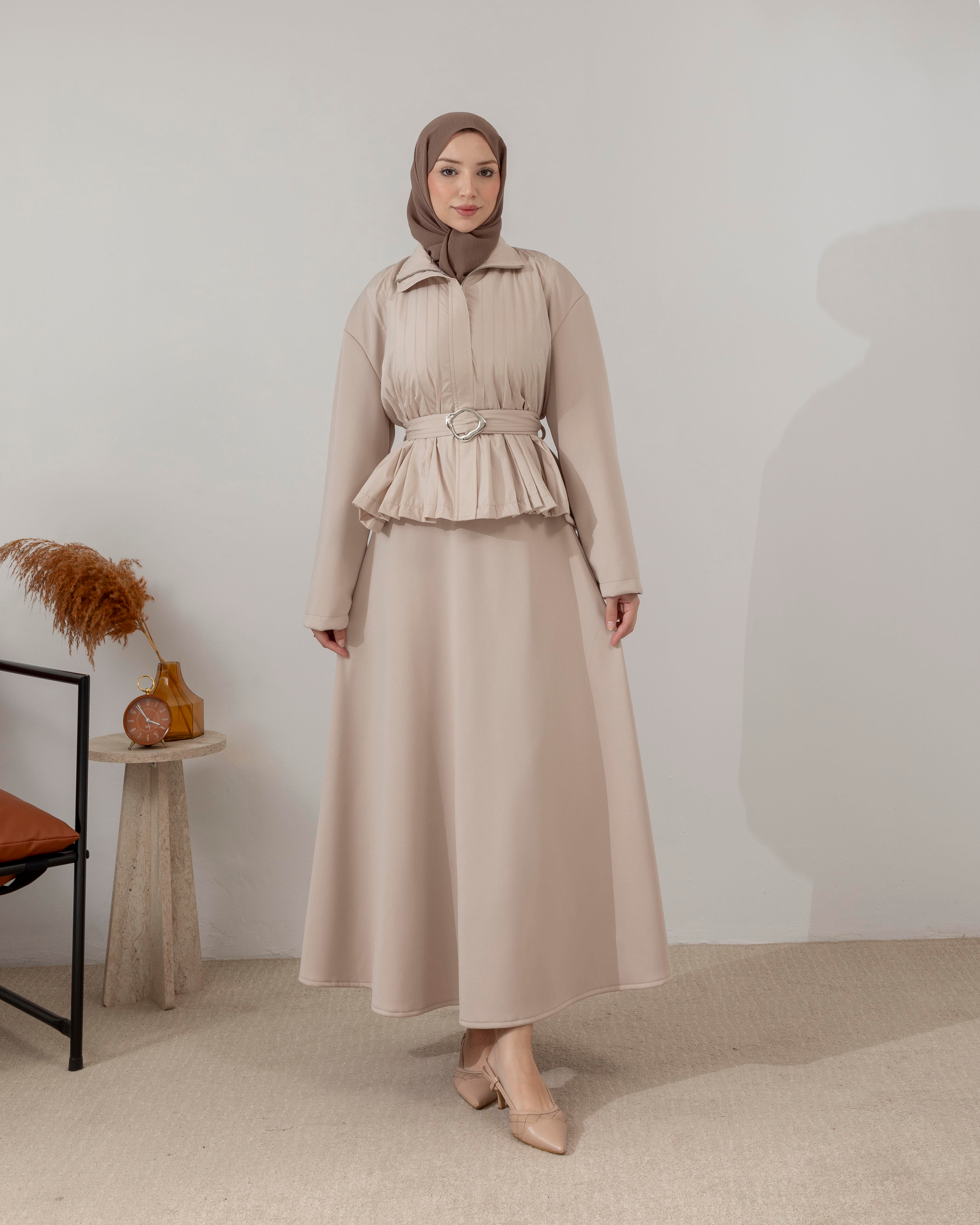 Fermuarlı Pile Detaylı Taş Etekli Takım
