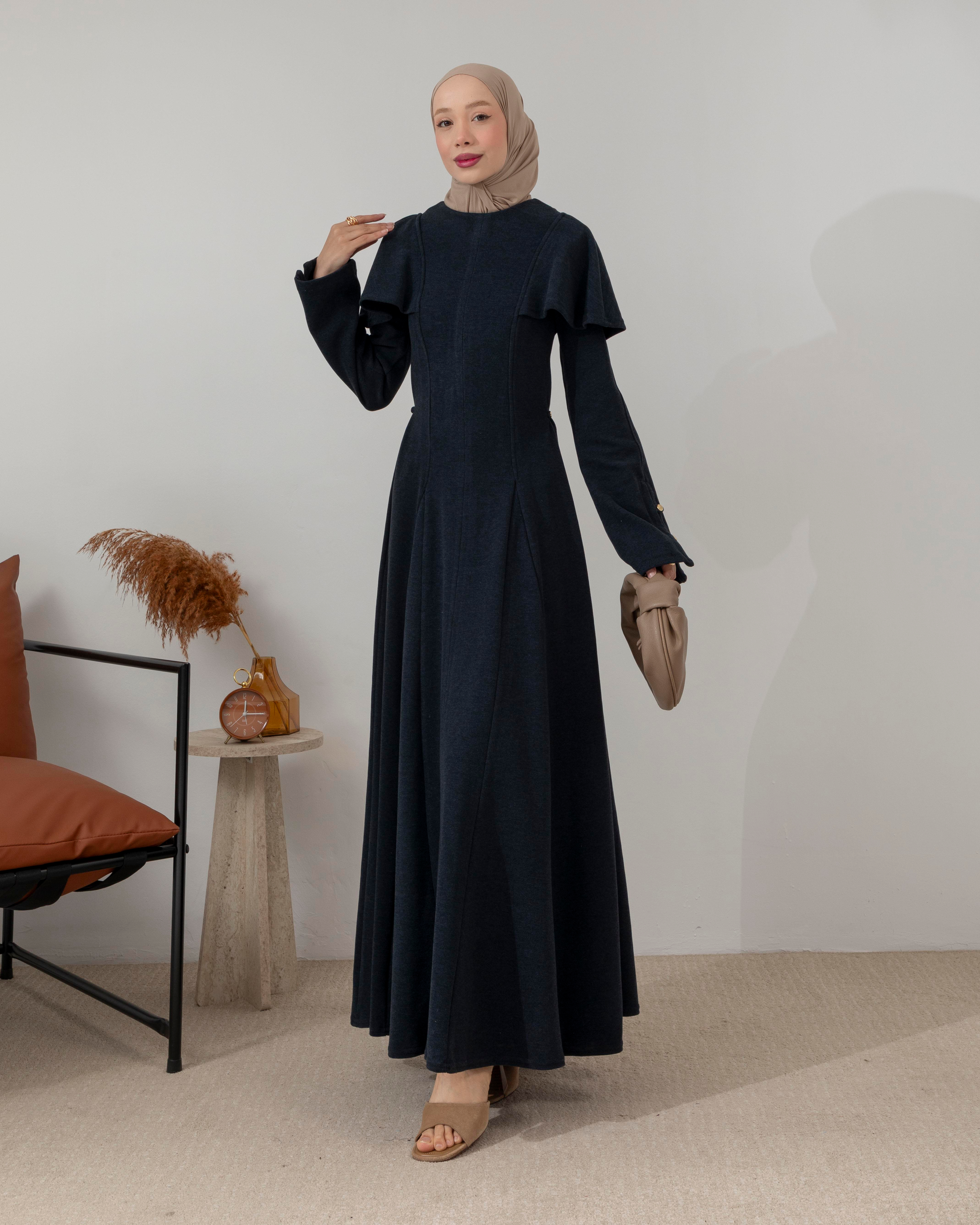 Omuz Detaylı Bel Daraltmalı Lacivert Elbise