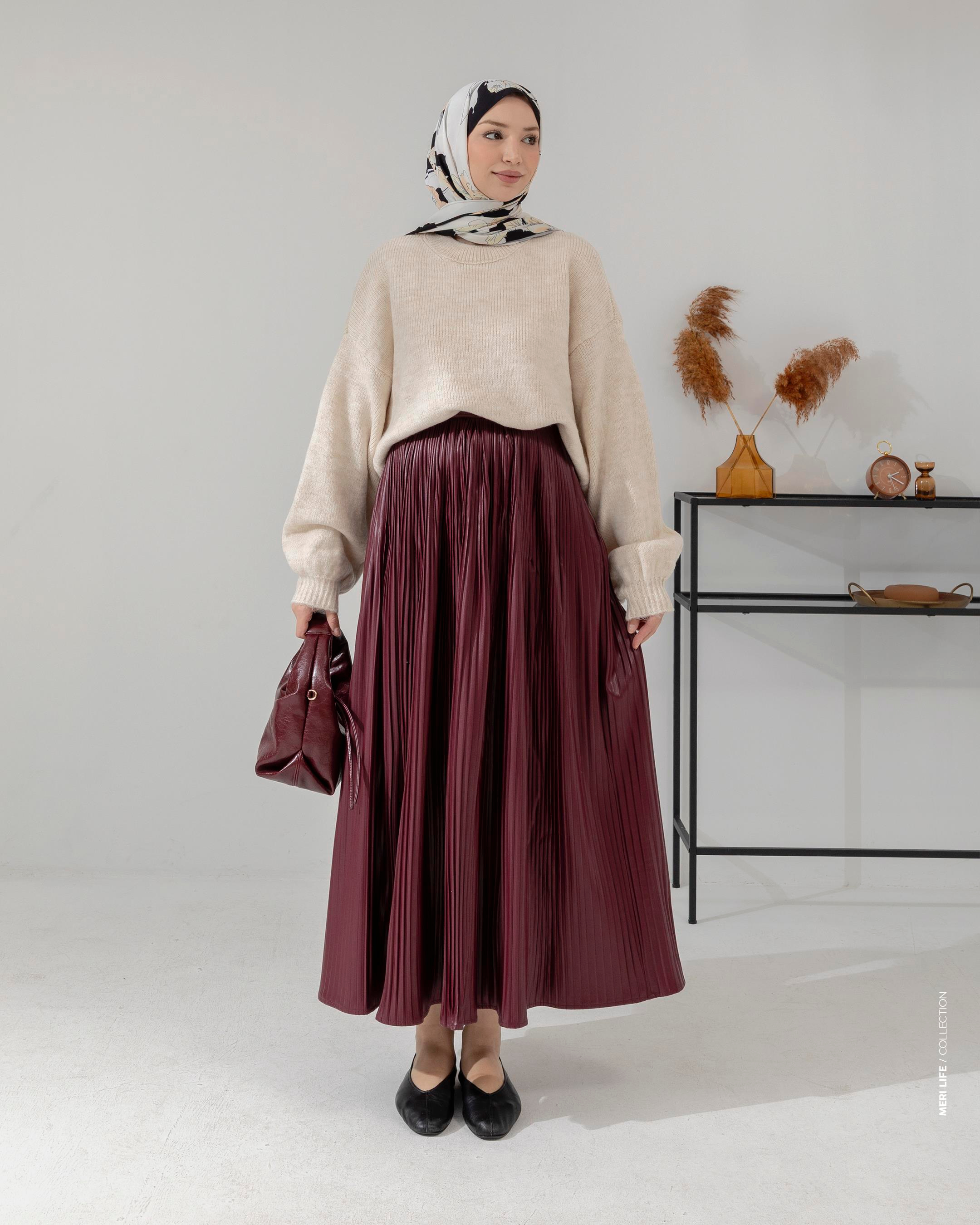 Piliseli Bordo Deri Etek